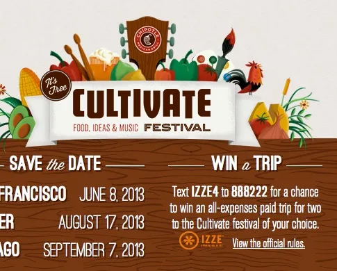 SAN FRANCISCO 13 de mayo de 2013 – Como parte de su celebración de la música y las ideas gastronómicas, Chipotle Mexican Grill se ha asociado con tres cervecerías locales para su 2013. Cultivar festivales en San Francisco, Denver y Chicago para producir una Cultivate Farmhouse Ale única en su tipo, una cerveza estilo Saison que será única en cada ciudad y que se servirá exclusivamente en los festivales Cultivate. La cerveza se elabora en colaboración con Speakeasy Ales.