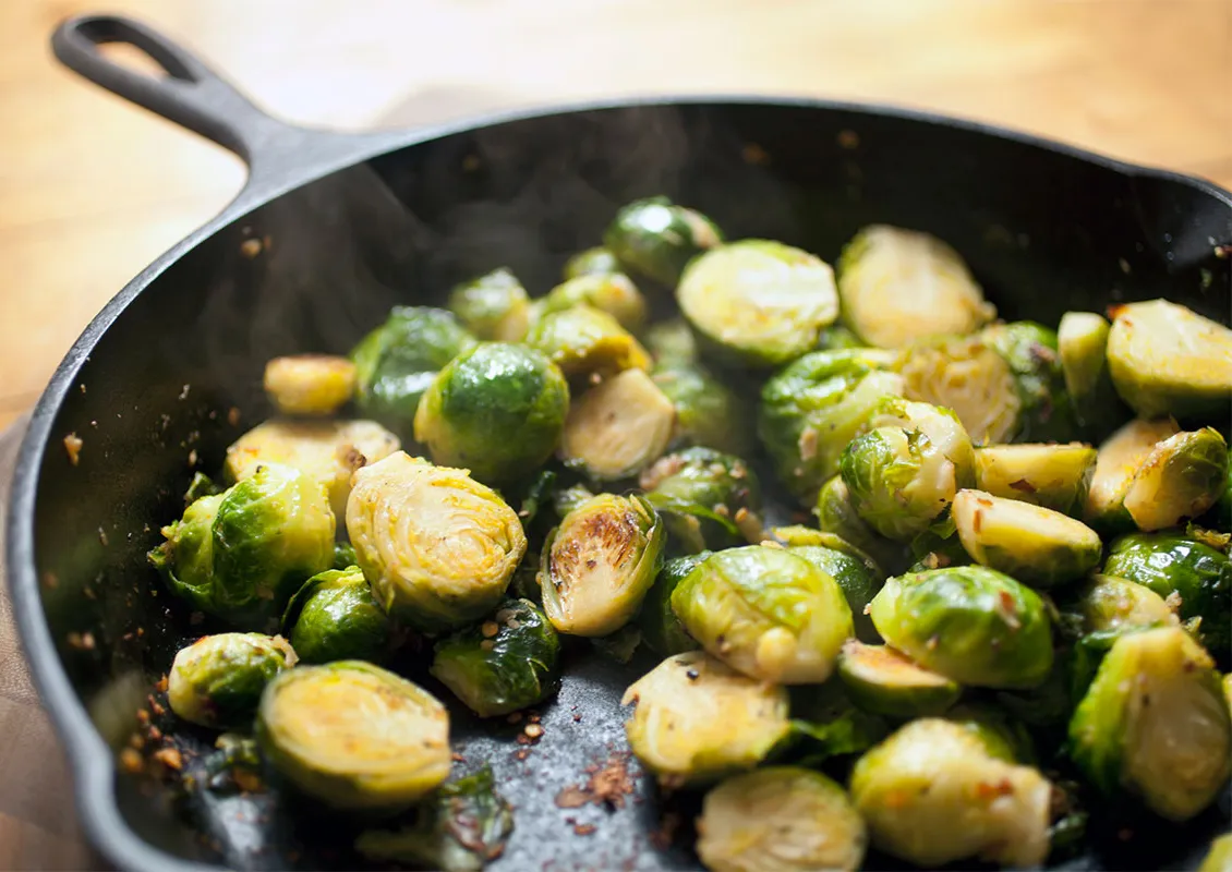 VeganBrew combina cocina vegana y cerveza artesanal con recetas creativas. Aquí hay uno de coles de Bruselas estofadas en cerveza con tocino shiitake y pilaf de quinua.