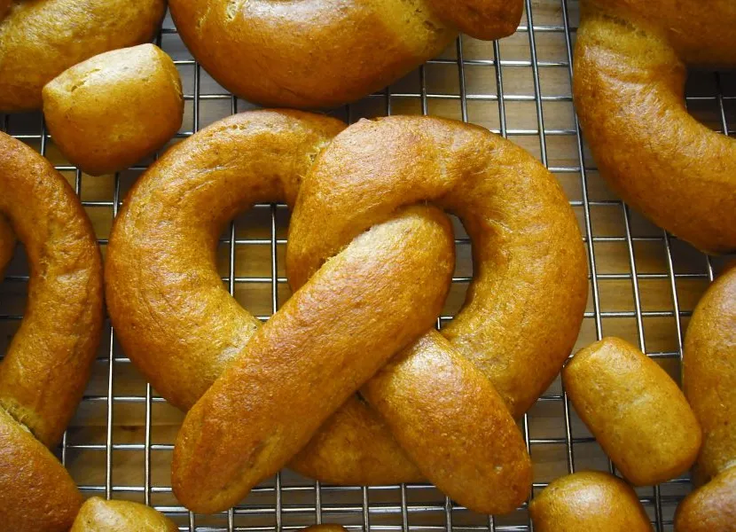 Estos deliciosos pretzels suaves de calabaza y cerveza contienen tus especias de otoño favoritas, como canela, clavo y nuez moscada. Estas delicias mantecosas y saladas son perfectas para comer el día del partido.