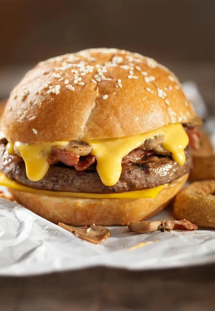 Jason Adams comparte su receta para la hamburguesa perfecta hecha con su tocino de corte grueso, su cerveza ámbar favorita, y, por supuesto, ¡mucho queso cheddar!